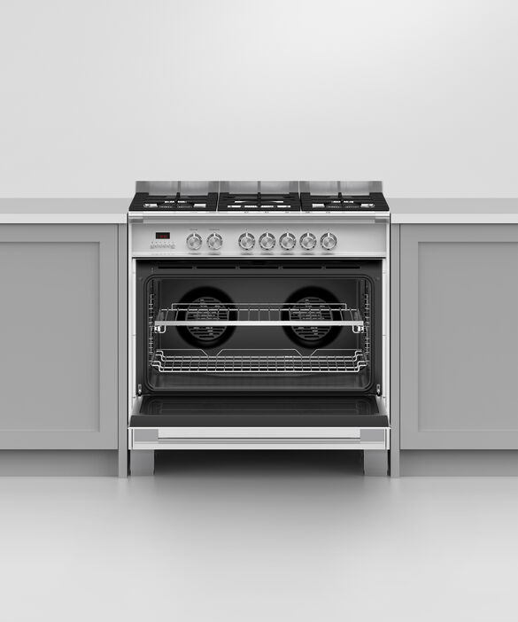 Get the best of both worlds with dual fuel. A gas cooktop with wok burner is paired with a nine-function convection oven.