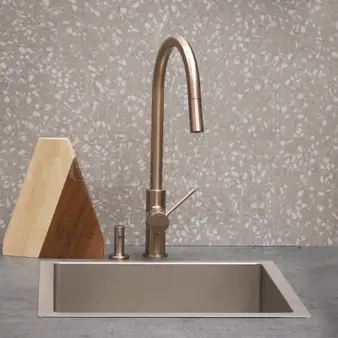 This elegant pull-out kitchen tap features a beautifully soft-moving handle and an ergonomically designed nozzle to ensure that you can comfortably reach everything in and around your sink.