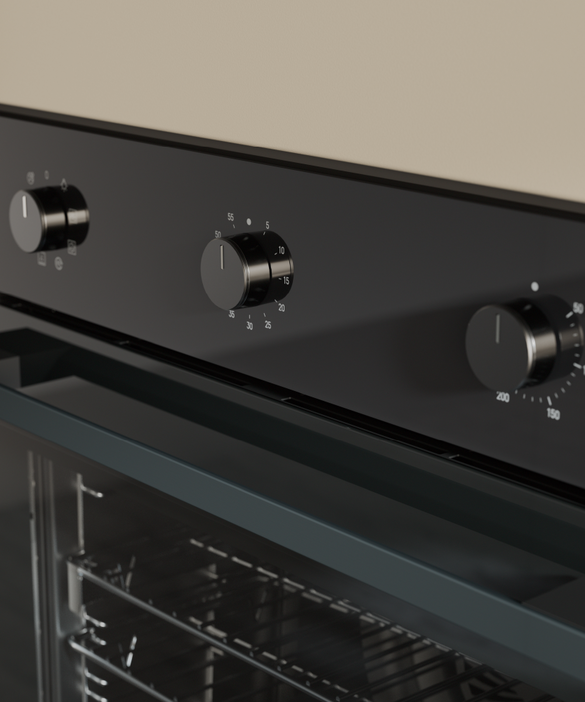 In a refined monochromatic black glass design, this oven delivers even convection heating and plenty of space for multi-shelf cooking.