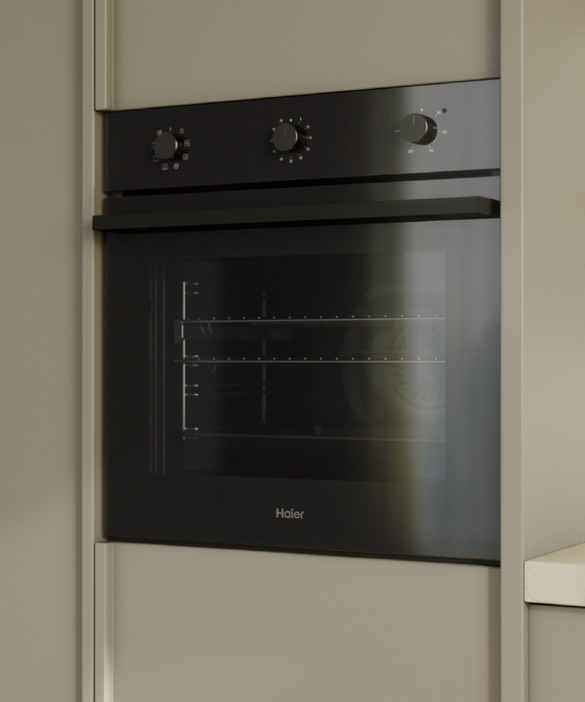 • Monochromatic black glass design to match the Haier family of kitchen appliances