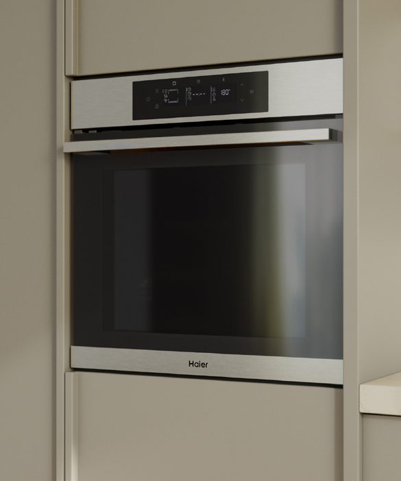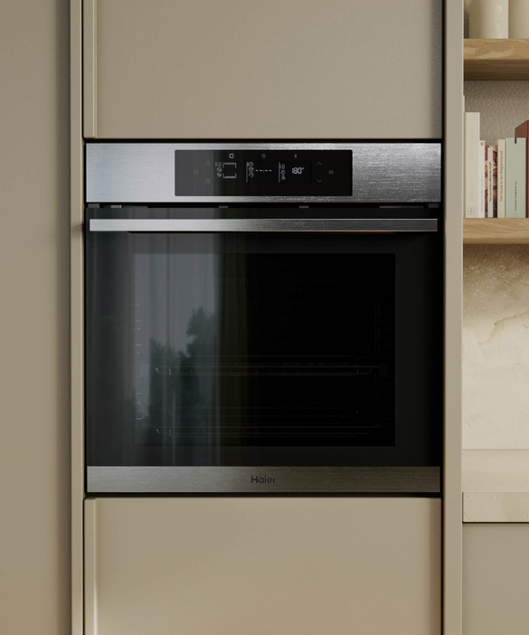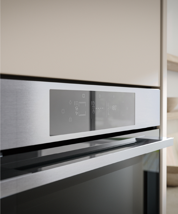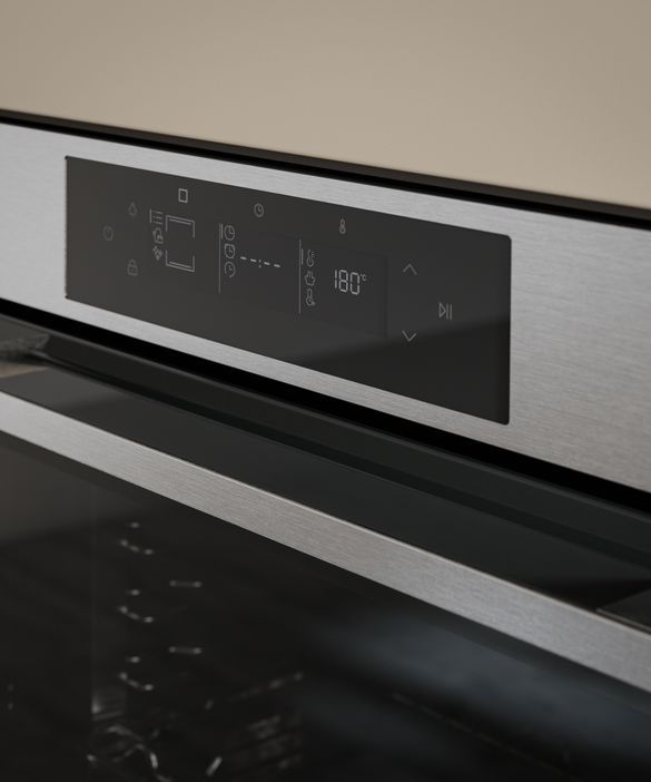 This oven features a versatile stainless steel finish, wifi connectivity and a host of cooking functions including Air Fry, Pizza, steam-assisted cooking, and pyrolytic self-cleaning.