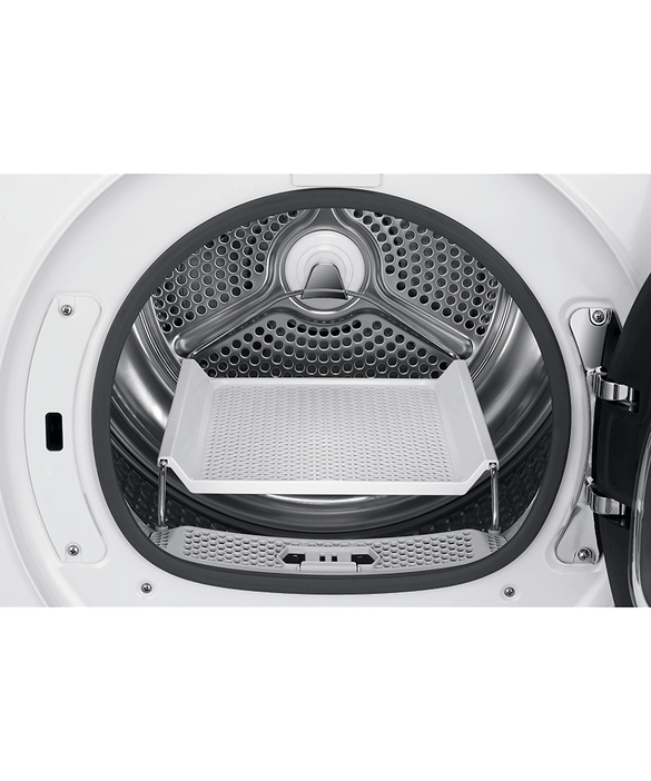 Heat pump technology dries at a lower temperature to look after your clothes, while no venting to outside is needed.
